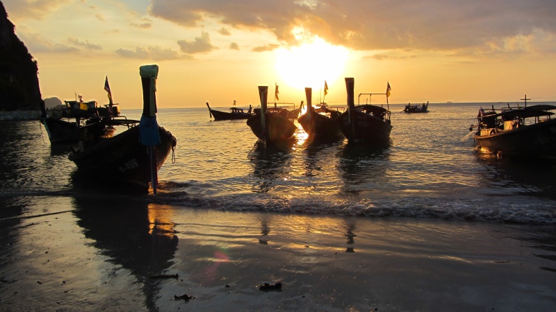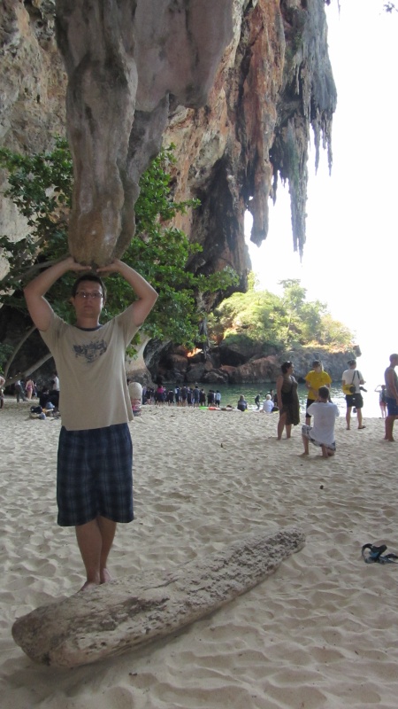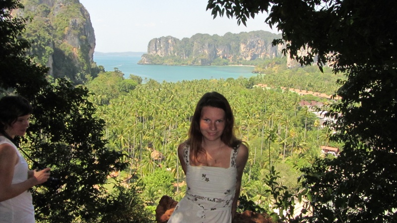Dzień później podeszliśmy do małej budki i kupiliśmy za pomocą uroczej dziewczynki bilety na długodystansową łódkę, która zabrała nas na inną plażę, tzw. Railey Beach, jakieś 5 km dalej. Nie dało się tam dojść, nie ma żadnej drogi dojazdowej.KasjerkiZaładunekKu przygodzieLong tail boatPo drodze mogliśmy podziwiać wysokie klify, ostro wystające z morza. Na jeden z takich klifów postanowiliśmy się wspiąć. Nasz gospodarz polecał nam to miejsce, mówił, że na szczyt prowadzi ścieżka, nie trzeba mieć sprzętu do wspinaczki. Wzięliśmy plecak, stroje kąpielowe i wyruszyliśmy na poszukiwanie „lagoon”, małego oczka wodnego gdzieś w środku skał.Oczko wg google