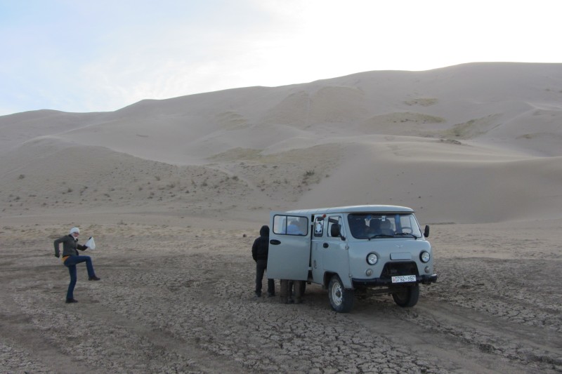 Podróż trwała ponad 3 godziny, a po drodze mijaliśmy najprzeróżniejsze krajobrazy: raz śnieżne równiny, raz kamienne żwirowiska i wyschnięte koryta rzek, czasem stado koni, wielbłądów czy krów, raz nawet dzikie kozice górskie i startującego orła.